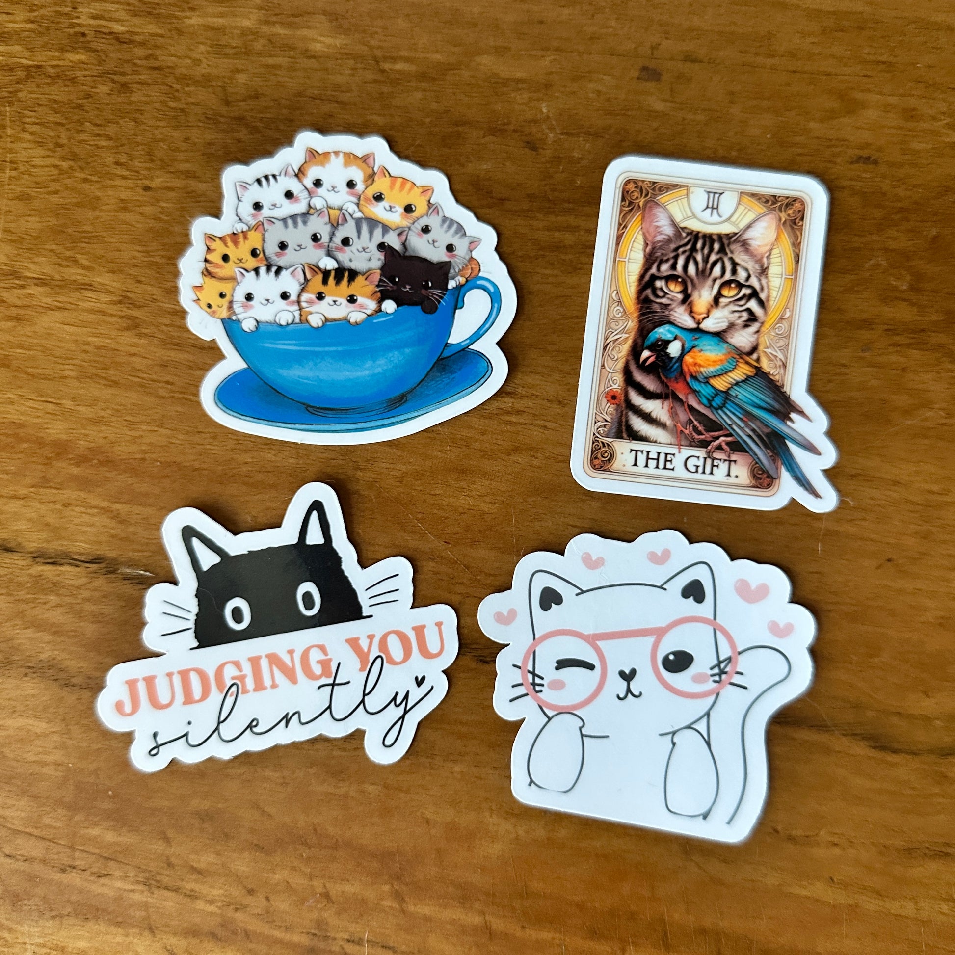 Stick or magnetize your iPad, phone case, Hydro Flask, sticker book, planner, snail mail, packaging, or scrapbooks. Treat yourself or surprise a cat-obsessed friend.