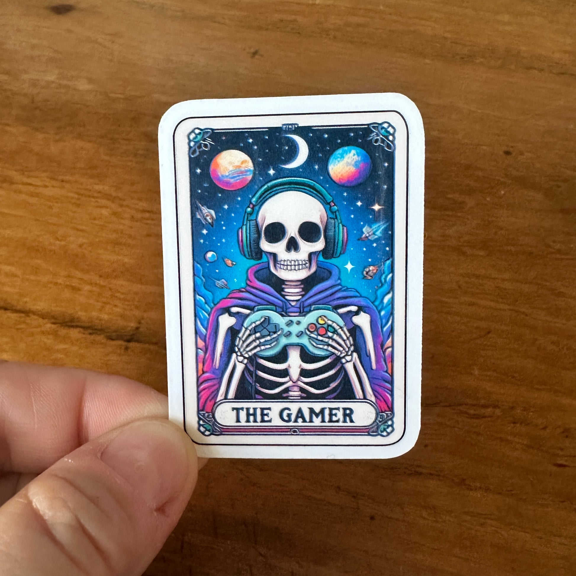 "The Gamer" Tarot Card Sticker: A cool, mystical skeleton-themed design that's perfect for any dedicated player.