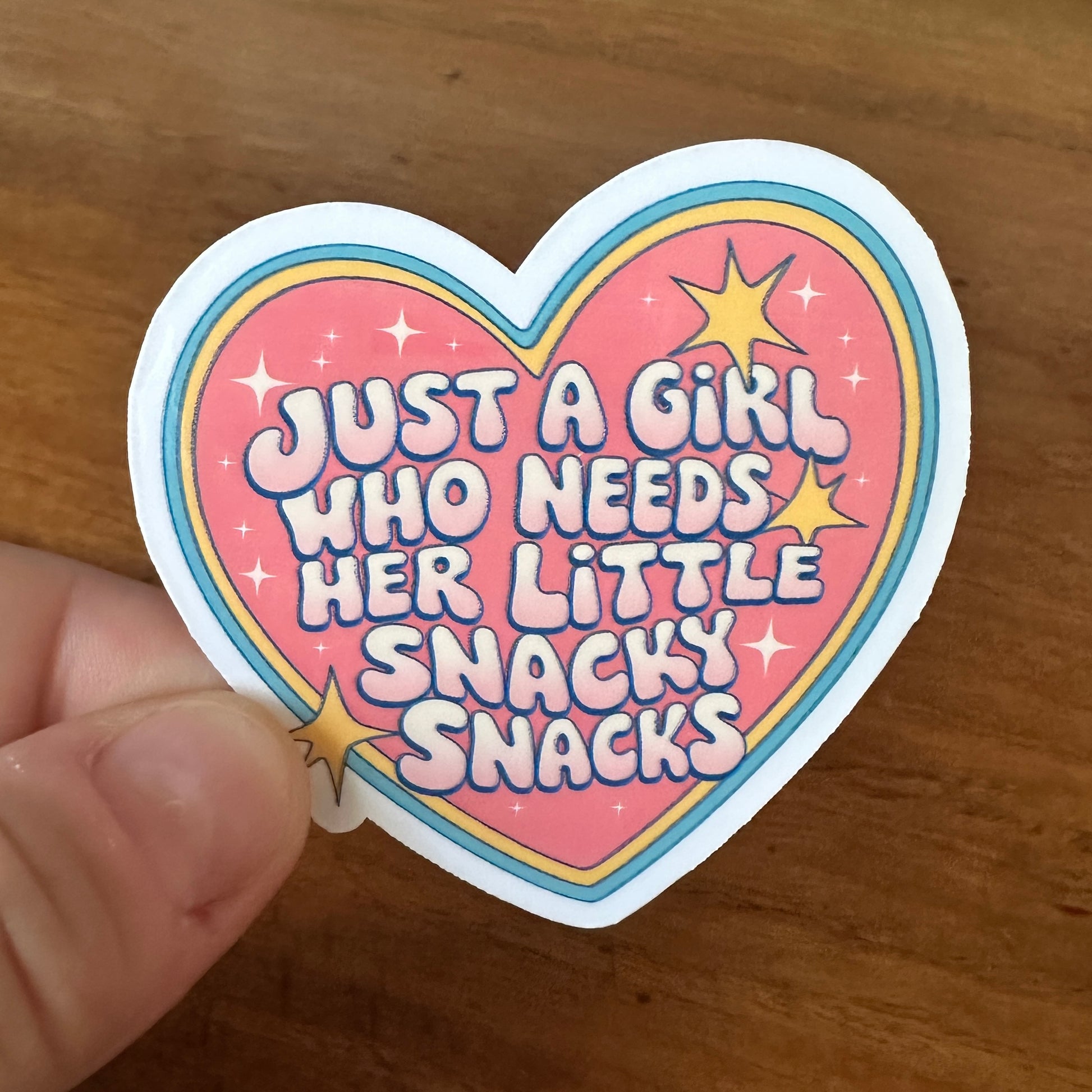 - "Just A Girl Who Needs Her Little Snack-Snacks" Sticker: A heartfelt ode to your favorite habit.
