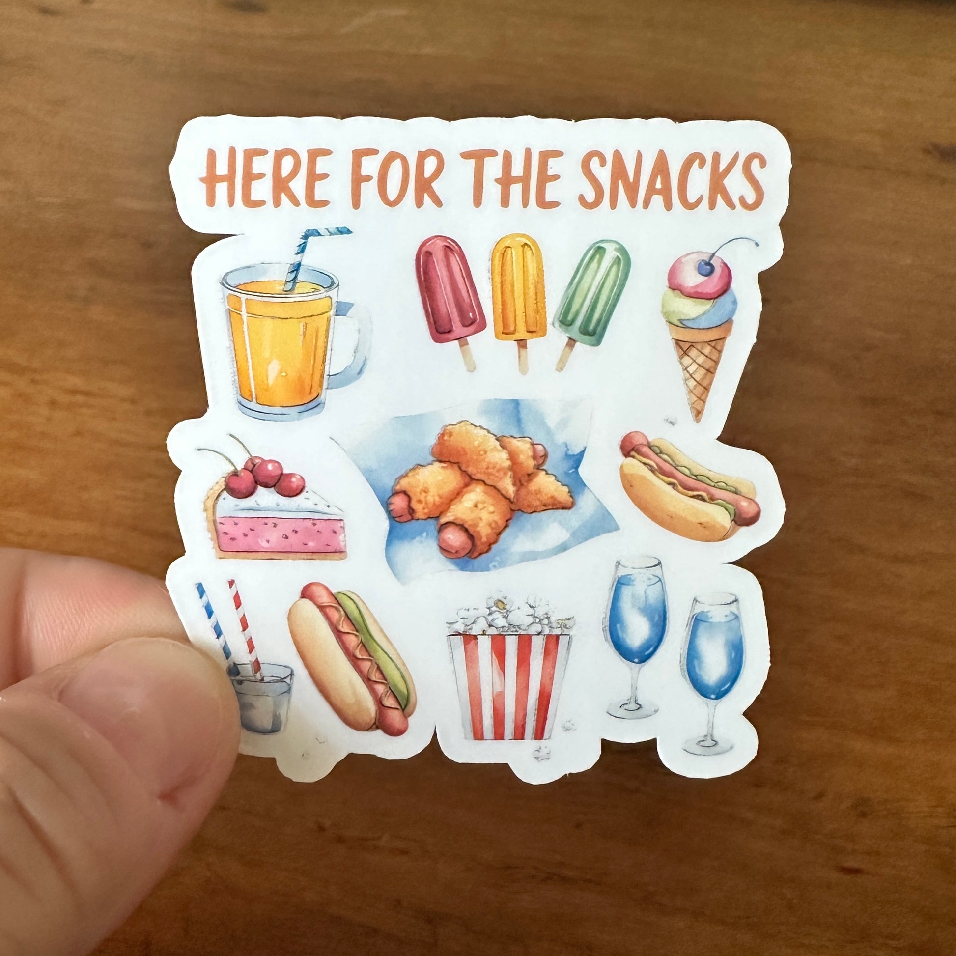 - "Here For The Snacks" Sticker: A fun collage of all the best movie theater and summer treats.