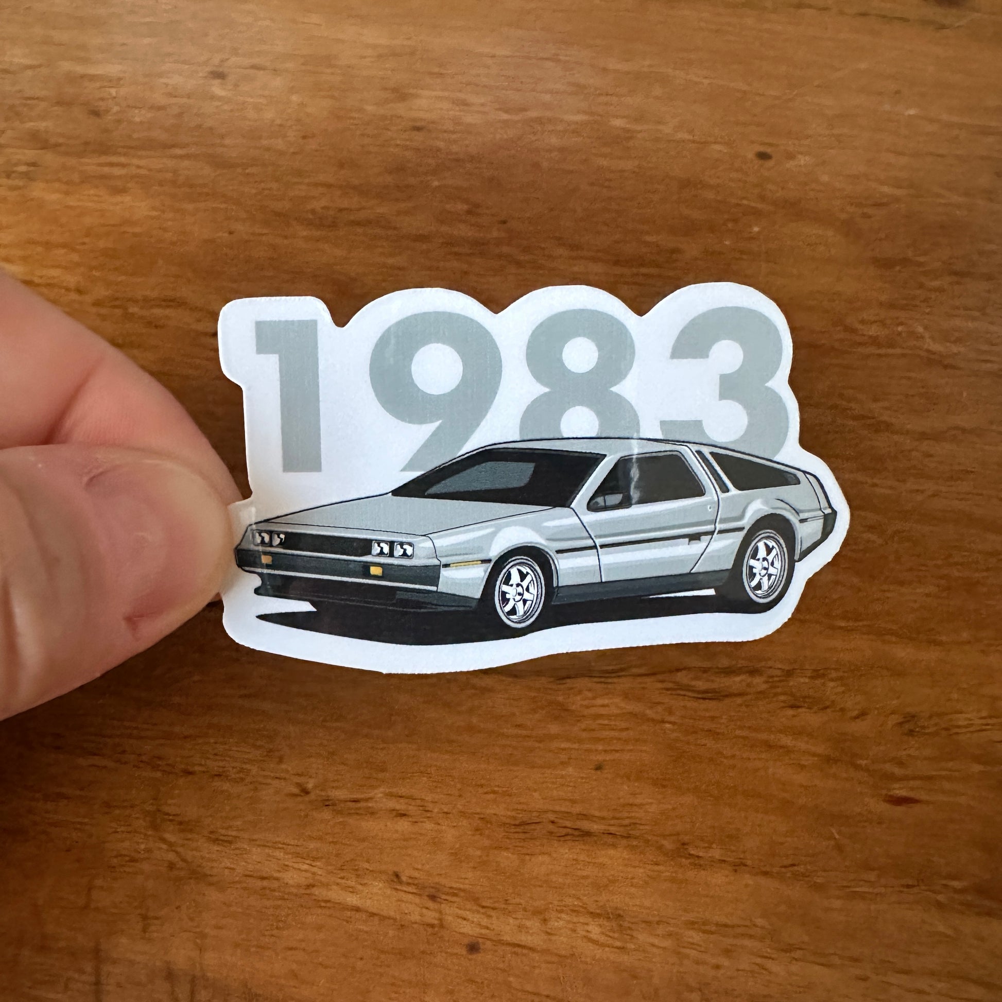 - Retro Car Sticker: A sleek car from the year 1983, a true classic.